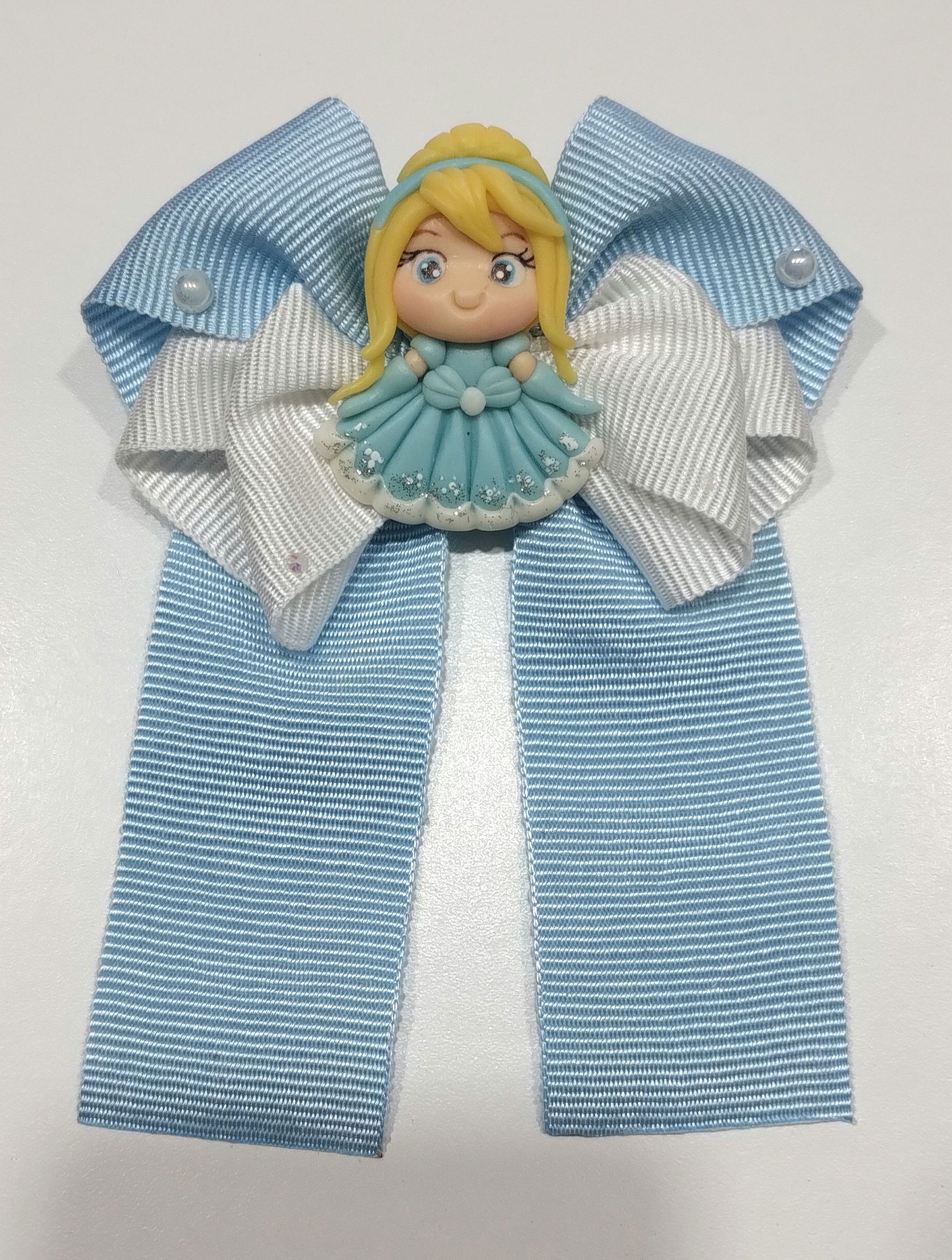 Lazo elaborado en cinta gross y aplique en porcelana.