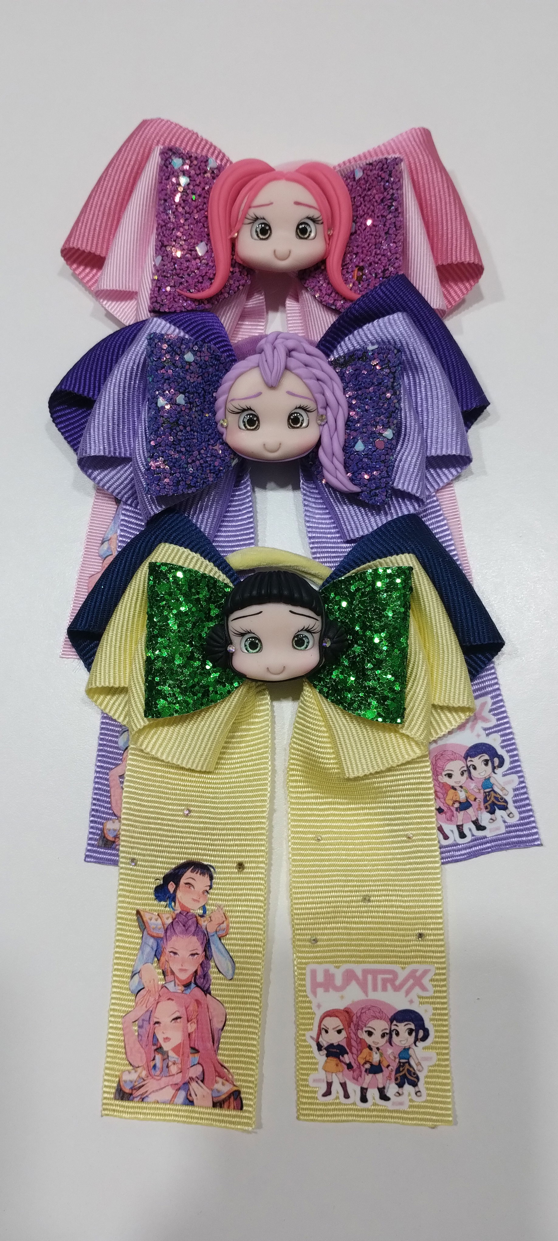 Lazo elaborado en cinta gross, pu glitter y aplique de porcelana y DTF con strass.